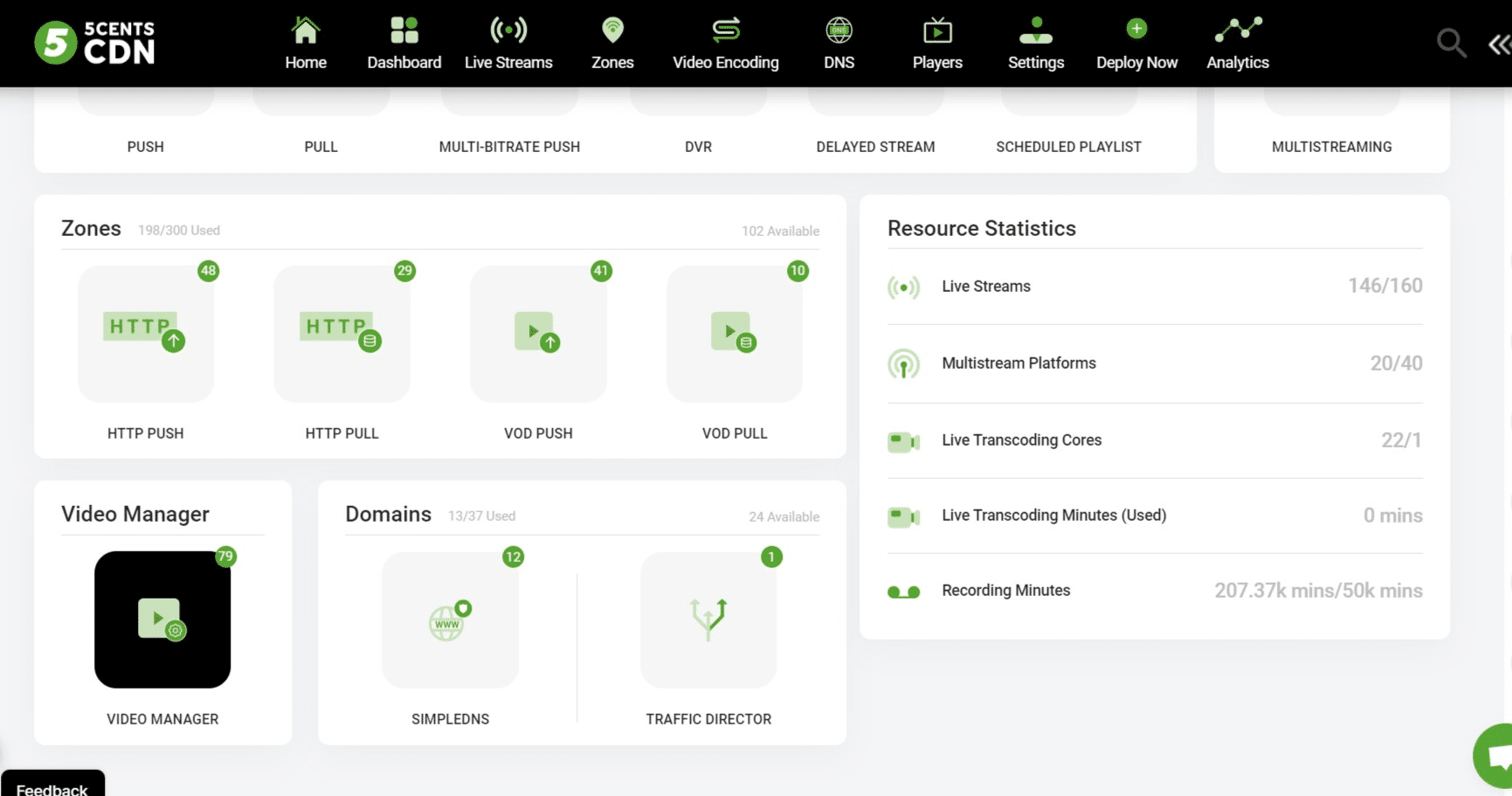 Video Manager allows us to upload videos to the cloud and schedule them as playlists. The playlist can be embedded on the clients’ websites. The users can then watch the videos from the playlist. In a video manager, the root is known as a project. 5centsCDN’s control panel requires the creation of a project before setting up the video manager. Video uploads and playlist creation can be created within the project.